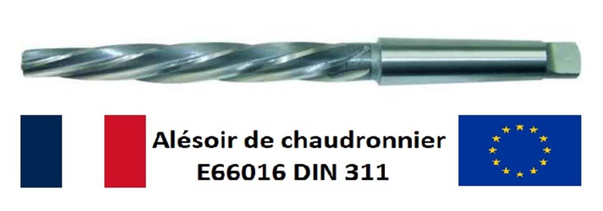 Alésoirs de chaudronnier E66016-DIN 311 HSS M2 Hélice à gauche 25° coupe à droite conicité 1/10éme queue cône morse CM2 Ø12 Destinés aux montages de plusieurs parties et ensembles lorsqu'il y a besoin d'aligner des trous ou les agrandir. Très appréciés en chaudronnerie