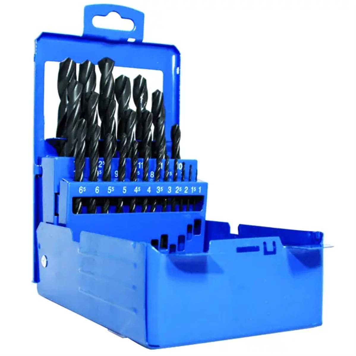 Coffret métallique de 25 forets cylindriques HSS laminés, LAM de Ø 1 à Ø 13 par 0,5 mm. Affûtage standard 118°. DIN 338