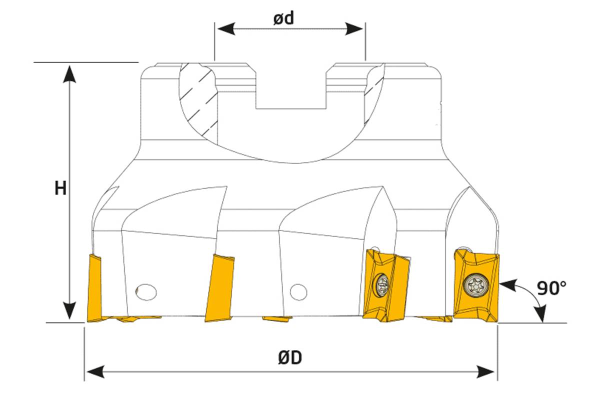 Fraise à plaquettes 90° APKT 1003 ØD 63 - Ød 22 - Z 7 - H 40