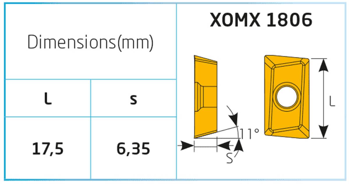Fraise à plaquettes 90° XOMX 1806 - ØD 50mm - Ød 22mm - Z 5 - H 45mm - Plaquette XOMX 1806 SCO - Vis M4,5 x 11