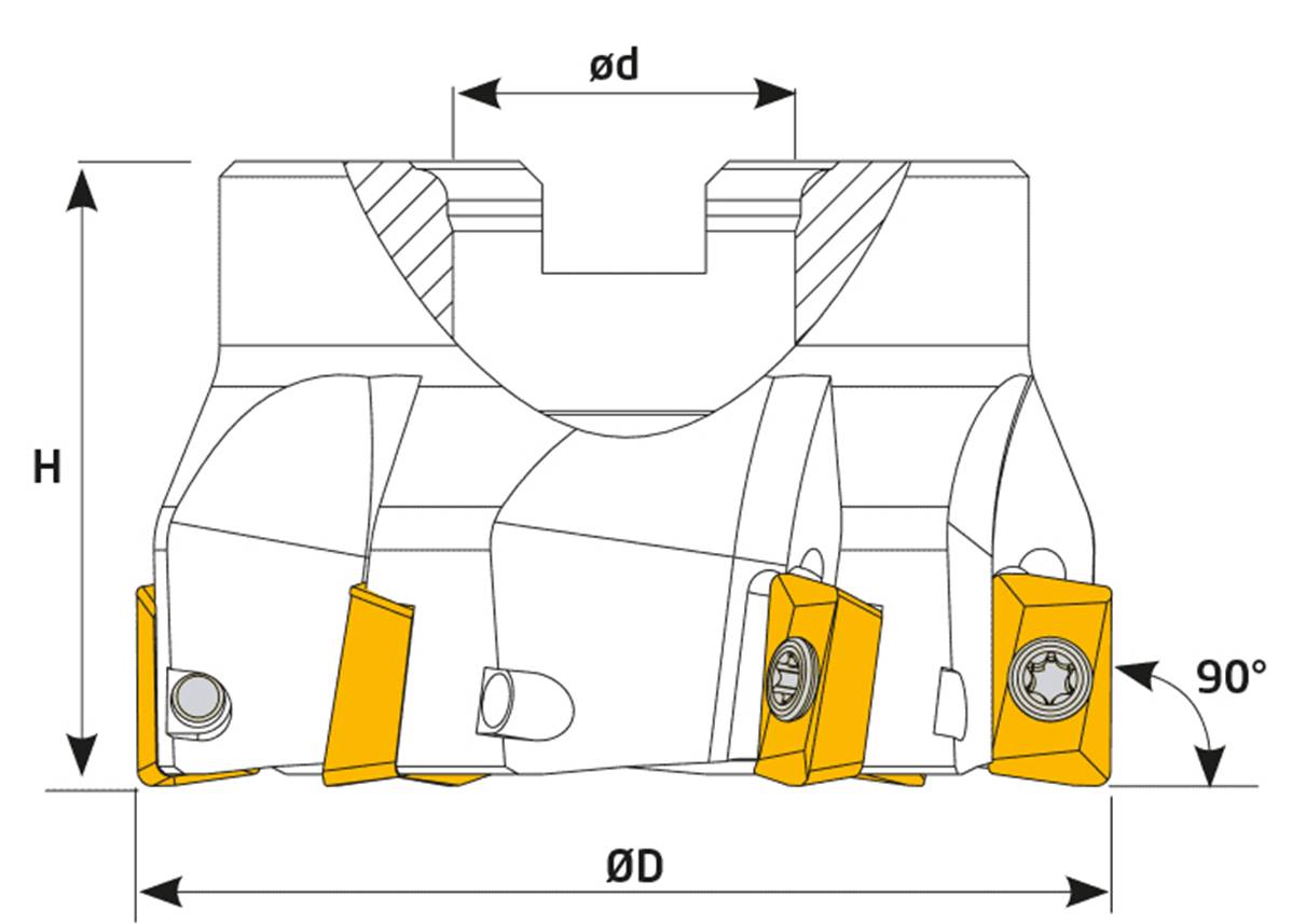 Fraise à plaquettes 90° XOMX 1806 - ØD 50 - Ød 22 - Z 5 - H 45