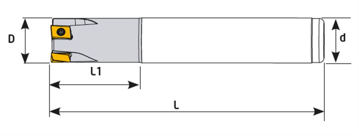 Fraise D16 d16 Z02 L120 LNMT 08 End Mill Plaquettes LNMT 0804 ISCR L 8,59 - S 4,24 - A 7,43
