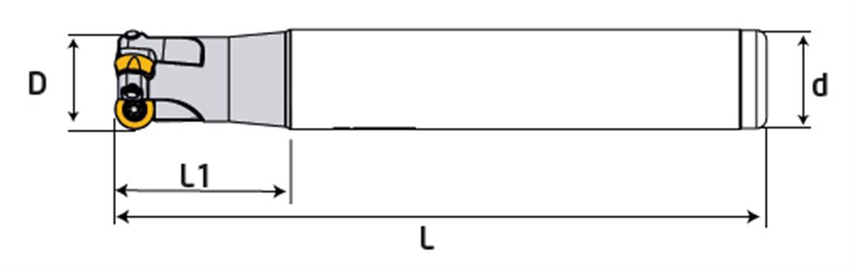 Fraise D16 d16 Z02 L130 RPMW 08 End Mill Plaquettes RPMW 0803 KRLY t 3,18 - d 8