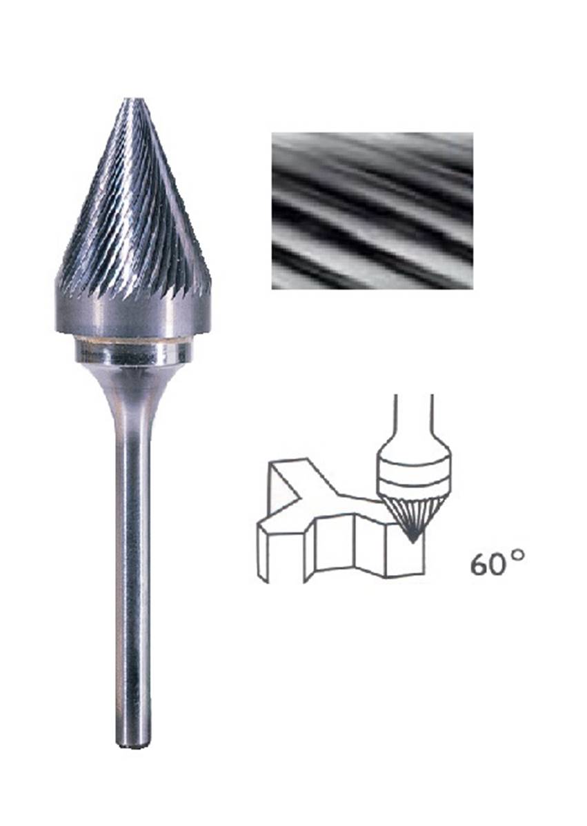Fraise lime rotative carbure conique à 60° denture Simple - T03 Ø 6 x 5 queue de Ø 6 6X5 MM Norme USA