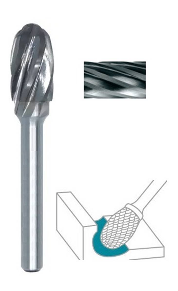 Fraise lime rotative carbure tête ovale SE denture Alu - T01 Ø 8 x 13 queue de Ø 6 8X13 MM Norme USA SE-2M