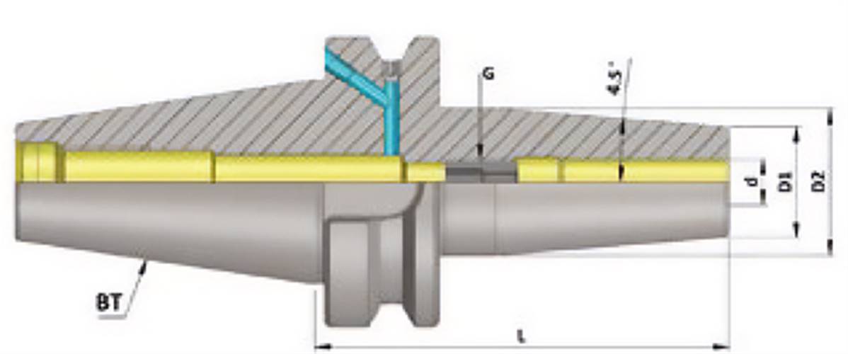 Mandrin de frettage BT40 - d14 - L 120 - 4,5° - D1 27 - G M10 - BT MAS403 (JIS 6339) - Forme AD/B - Equilibrage G2,5 @25000tr - Fort serrage et rigide