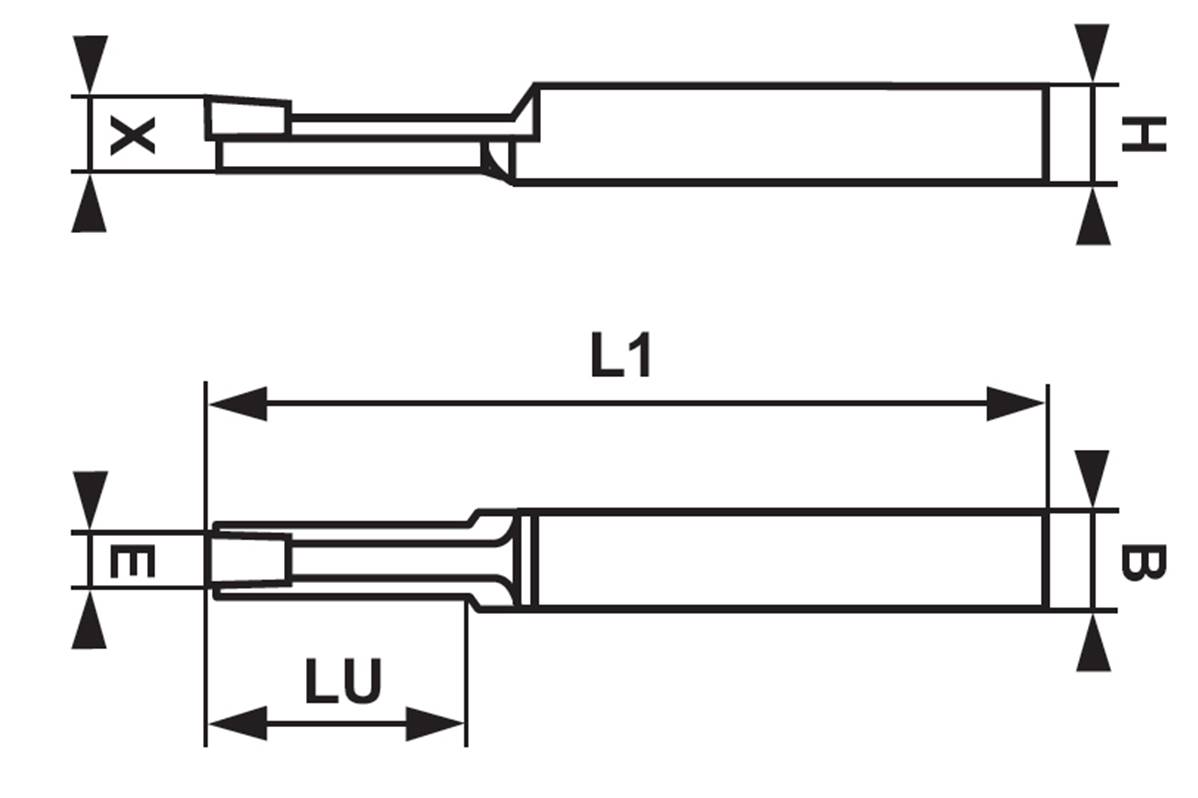 Outil à mortaiser, section carrée 16X16X225 LARGEUR 3 HSS-CO 10% Tolérance sur largeur E + 0,05 + 0,15 Lu 60 X 15