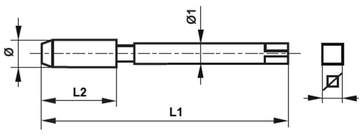 Taraud coupe à gauche filetage pas gaz HSS DIN 5157 BSP 3/4 x 14 filets L1: 90mm L2: 22mm Ø1: 20mm Carré: 16mm - N°3